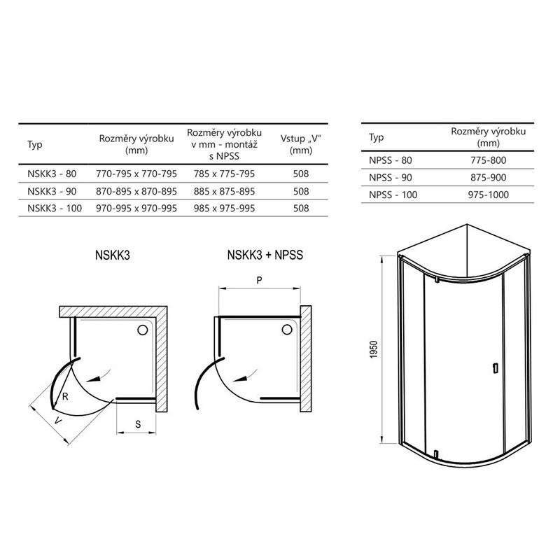 | Zmena názvu sklad. karta | kút sprch pivot NEXTY NSKK3-80 1/4-kruh R500, ( L/P ) v. 195cm, bright alu+Transparent |