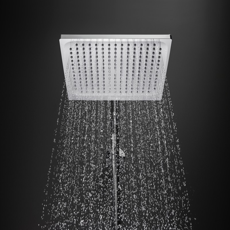 Svieži kvadratický dizajn sprchy s harmonicky zaoblenými tvarmi a lesklými chrómovanými povrchmi je optický skvost, ktorý dokonale zapadne do každej kúpeľne.