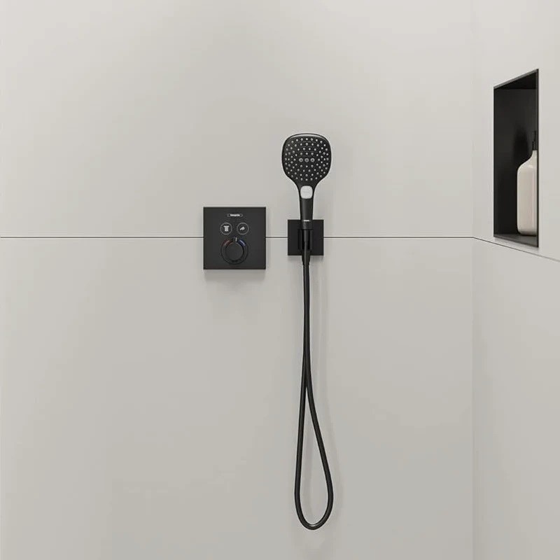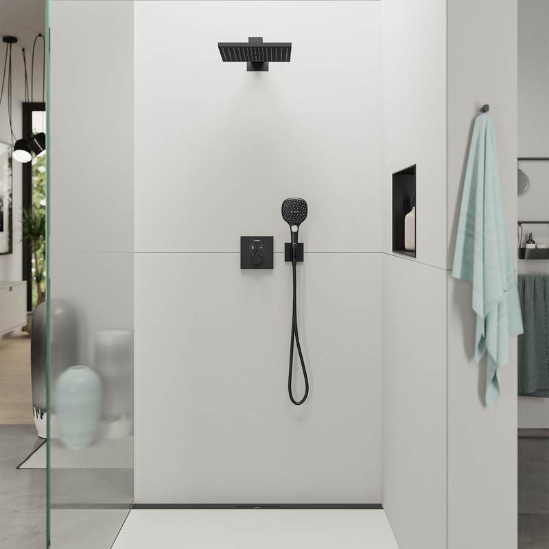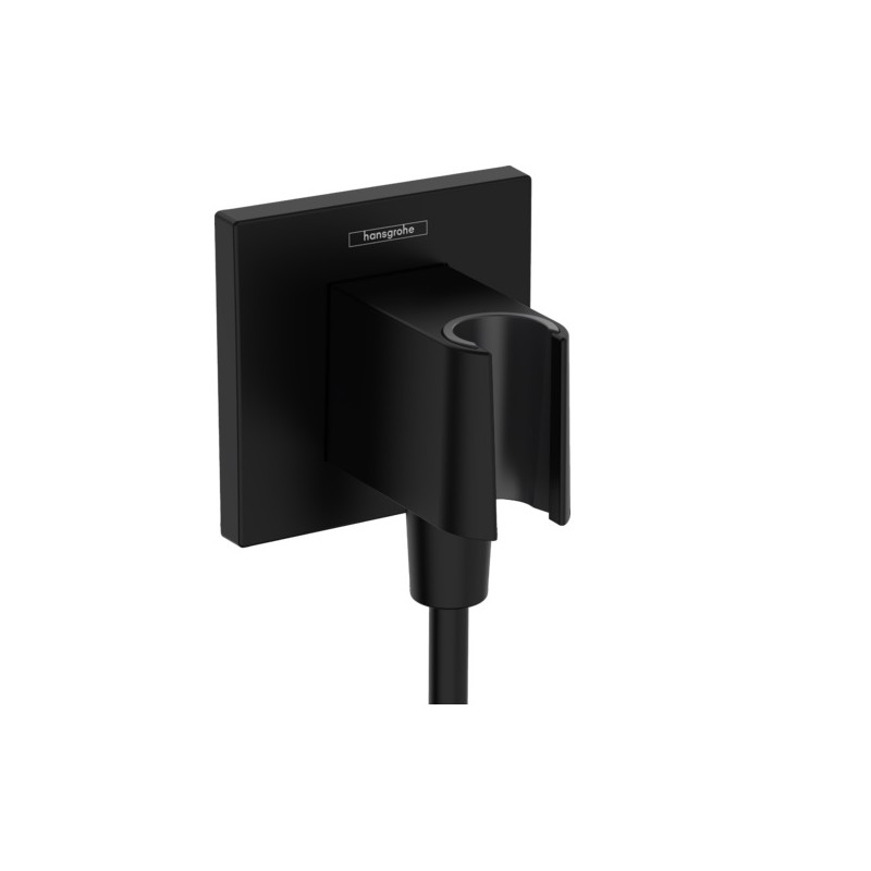 Pripojenie na stenu FixFit E s držiakom sprchy značky hansgrohe poskytuje možnosť pripojenia vody a bezpečné upevnenie sprchovej hlavice. Vyzerá nádherne a vďaka kompaktným rozmerom vytvára viac priestoru v sprche. Prietok a teplotu vody možno nastaviť pomocou podomietkovej vodovodnej batérie, ktorá sa predáva samostatne. Vďaka štvorcovej rozete a odvážnej povrchovej úprave v metalickej čiernej chrómovej farbe sa pripojenie na stenu hansgrohe FixFit E hodí najmä k hranatým batériám.