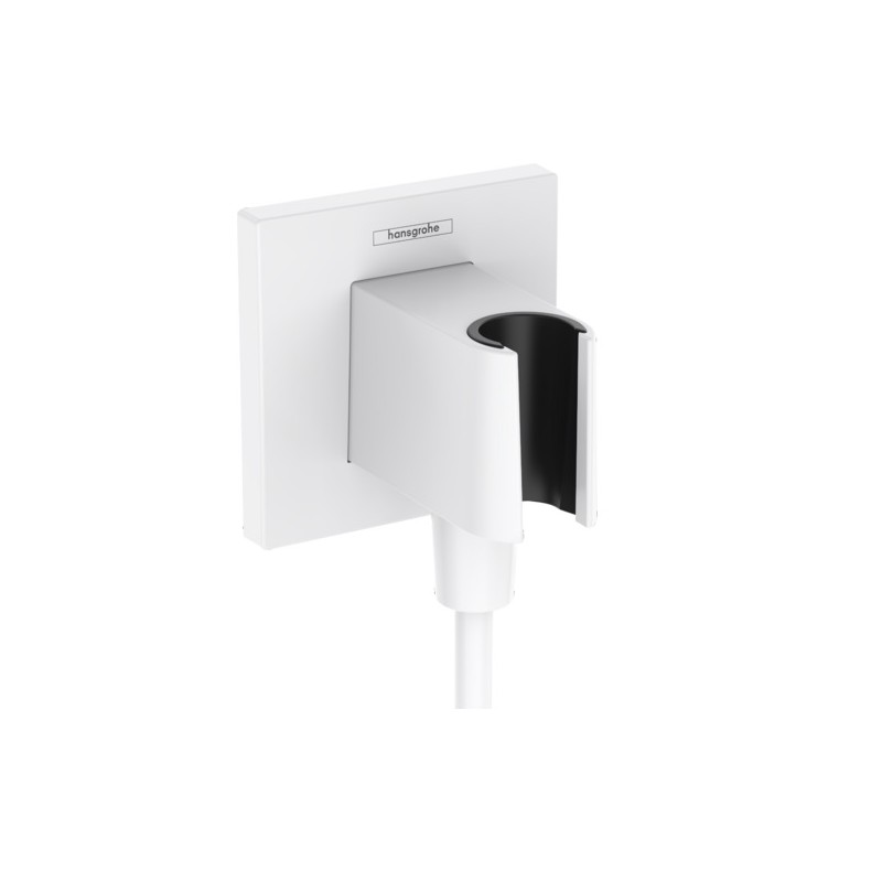 Pripojenie na stenu FixFit E s držiakom sprchy značky hansgrohe poskytuje možnosť pripojenia vody a bezpečné upevnenie sprchovej hlavice. Vyzerá nádherne a vďaka kompaktným rozmerom vytvára viac priestoru v sprche. Prietok a teplotu vody možno nastaviť pomocou podomietkovej vodovodnej batérie, ktorá sa predáva samostatne. Vďaka štvorcovej rozete a odvážnej povrchovej úprave v matnej bielej farbe sa pripojenie na stenu hansgrohe FixFit E hodí najmä k hranatým batériám.
