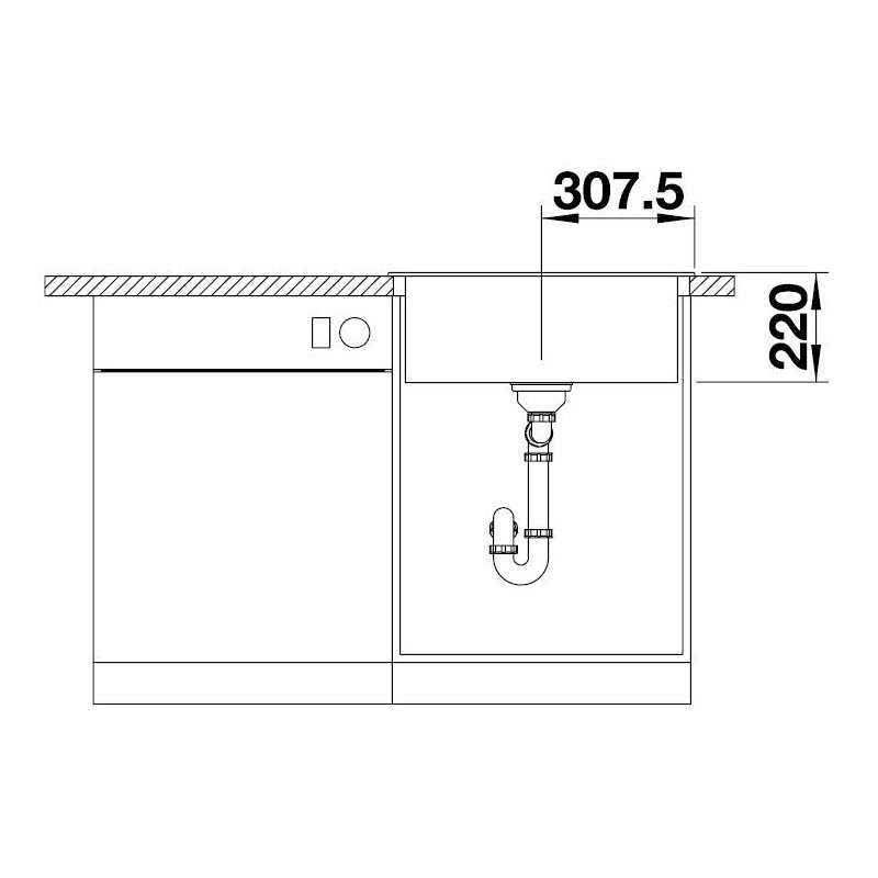 Odtoková armatúra, 3 ½" výpusť InFino® so sitkom, zápachový uzáver s odbočkou pre umývačku riadu