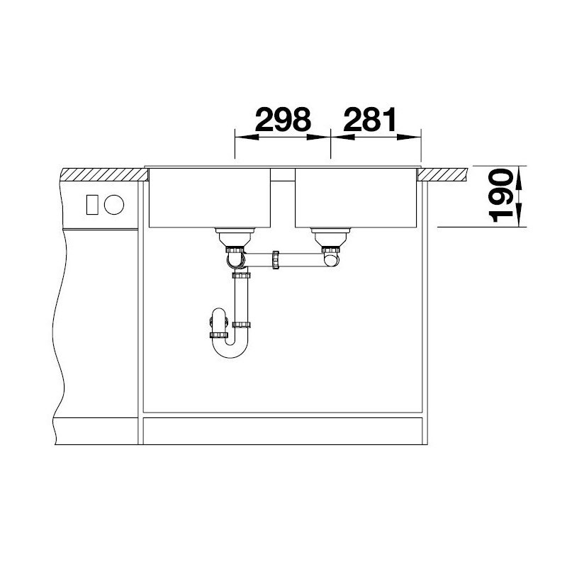 Odtoková armatúra, dve 3 ½" výpuste so sitkami, zápachový uzáver s odbočkou pre umývačku riadu