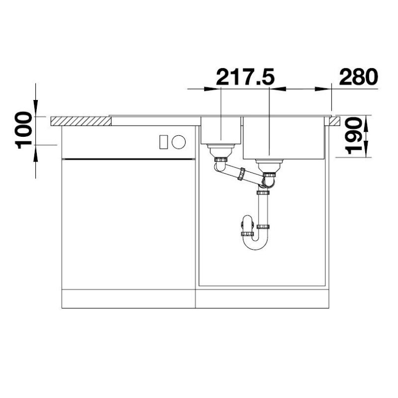 Odtoková armatúra, dve 3 ½" výpuste so sitkami, zápachový uzáver s odbočkou pre umývačku riadu