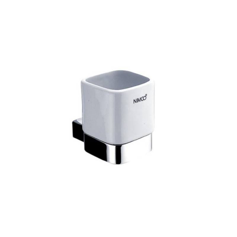 Držák na kartáčky s keramickým pohárkem. Úchyt mosaz s povrchovou úpravou chrom.