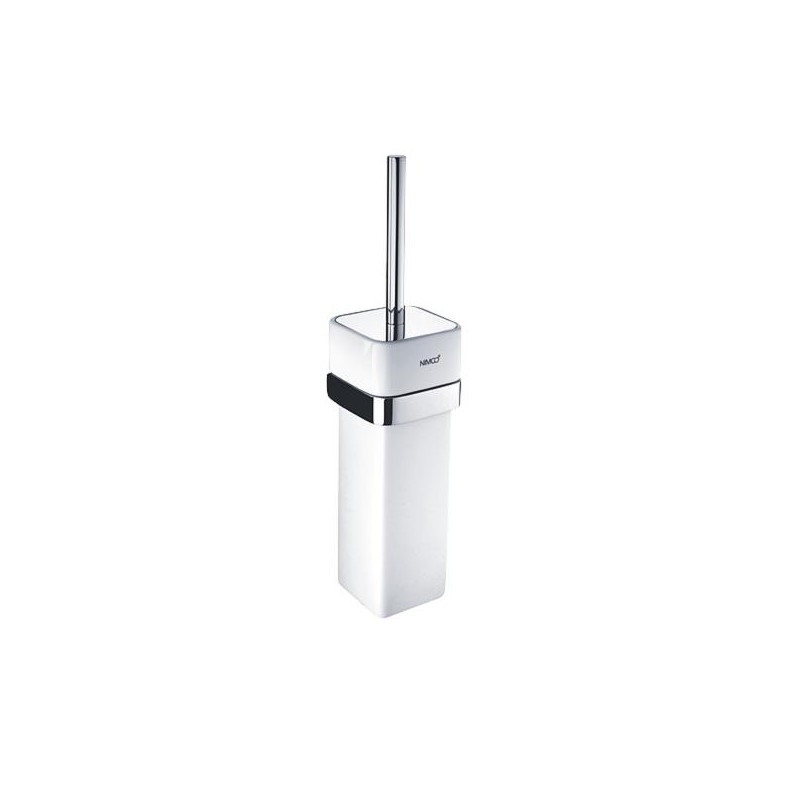 WC štětka s keramickou nádobkou. Úchyt a rukojeť z mosazi, povrchová úprava chrom.