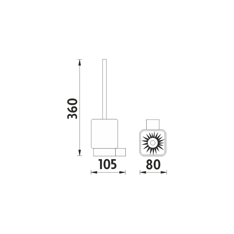 WC štětka s keramickou nádobkou. Úchyt a rukojeť z mosazi, povrchová úprava chrom.