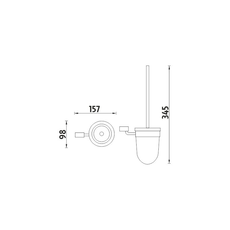 WC štětka s nádobkou z matovaného skla, nízká. Rukojeť kartáče z mosazi s povrchovou úpravou chrom.
