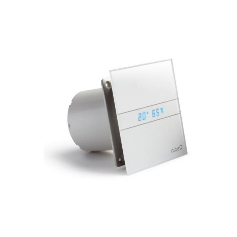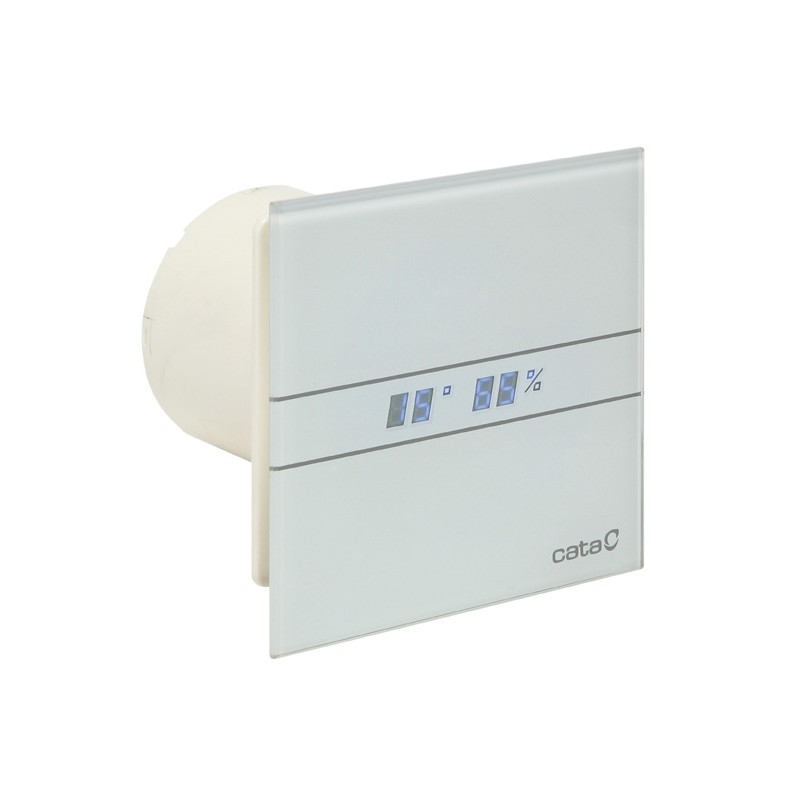 Ventilátor E-100 GTH, CATA, Hygro + Timer White, 2 rýchl., LED teplomer + vlhkomer, Sklenený kryt, 00900200.