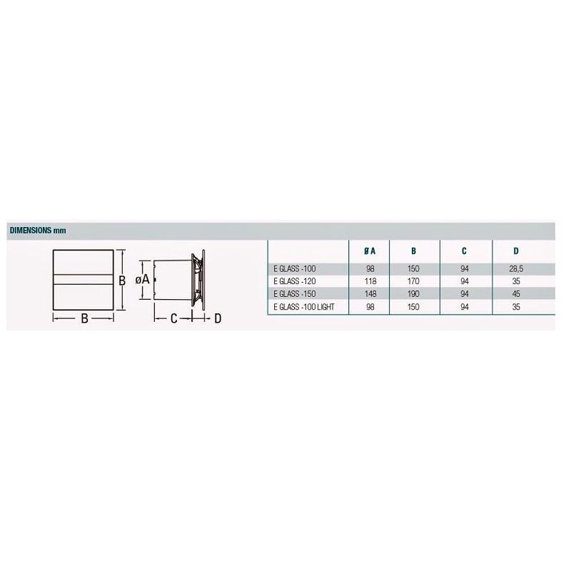 CATA E-100 GS kúpeľňový ventilátor Standard Silver sklenený čelný kryt, 00900400