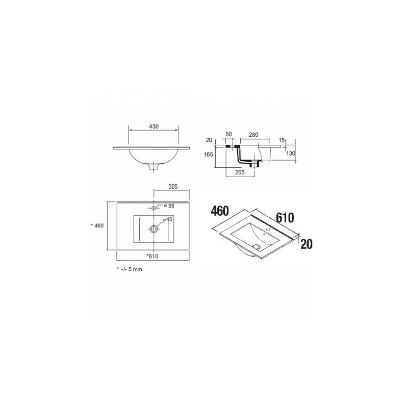- rozmery umývadla: 610 x 19 x 460 mm,