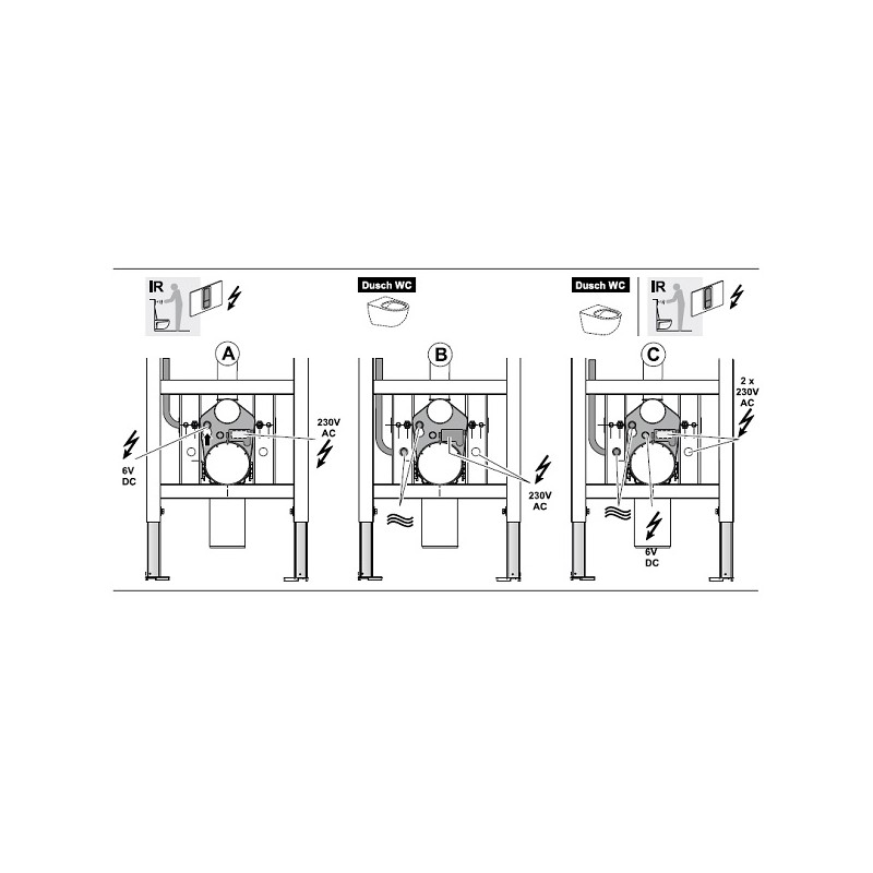 Na pripojenie sprchovacej WC misy a elektronické splachovanie je potrebná prípojka A230V.