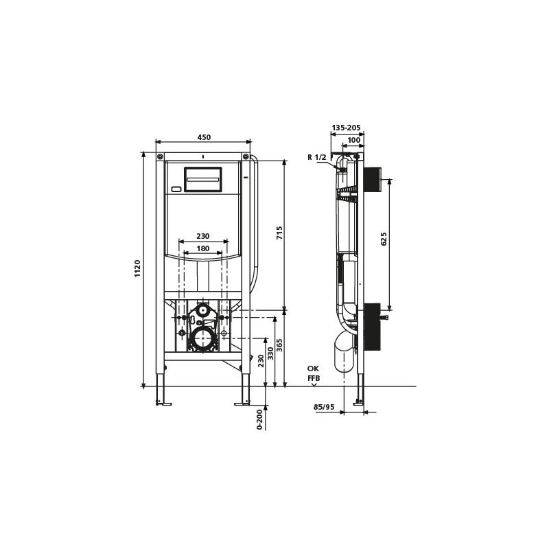 • v/š/h: 1 120/450/130 mm, pre závesné WC,