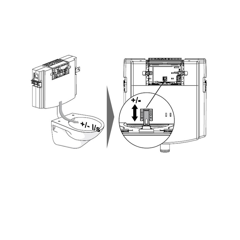 • regulátor prietoku splachovania nastaviteľný 1,27 - 2,44 l/s