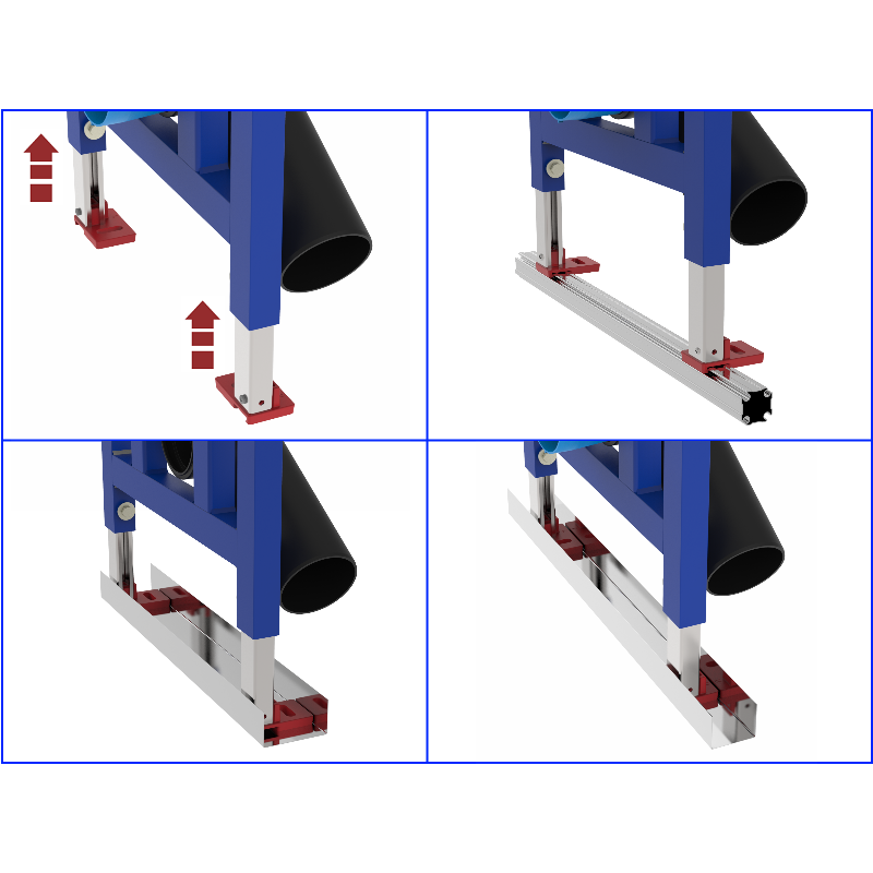 • samo svorné nožičky s otočnými základovými doskami vhodné pre sadrokartónové profily UW 50 a UW 75 a Sanit Systém 996, rozsah nastavenia nožičiek: 0-200 mm,