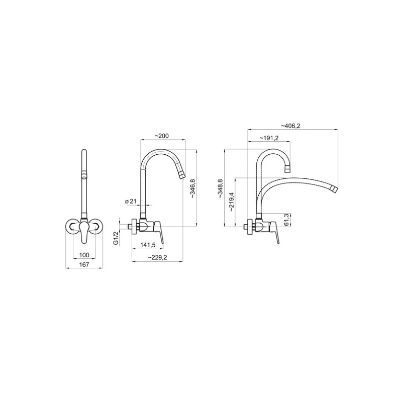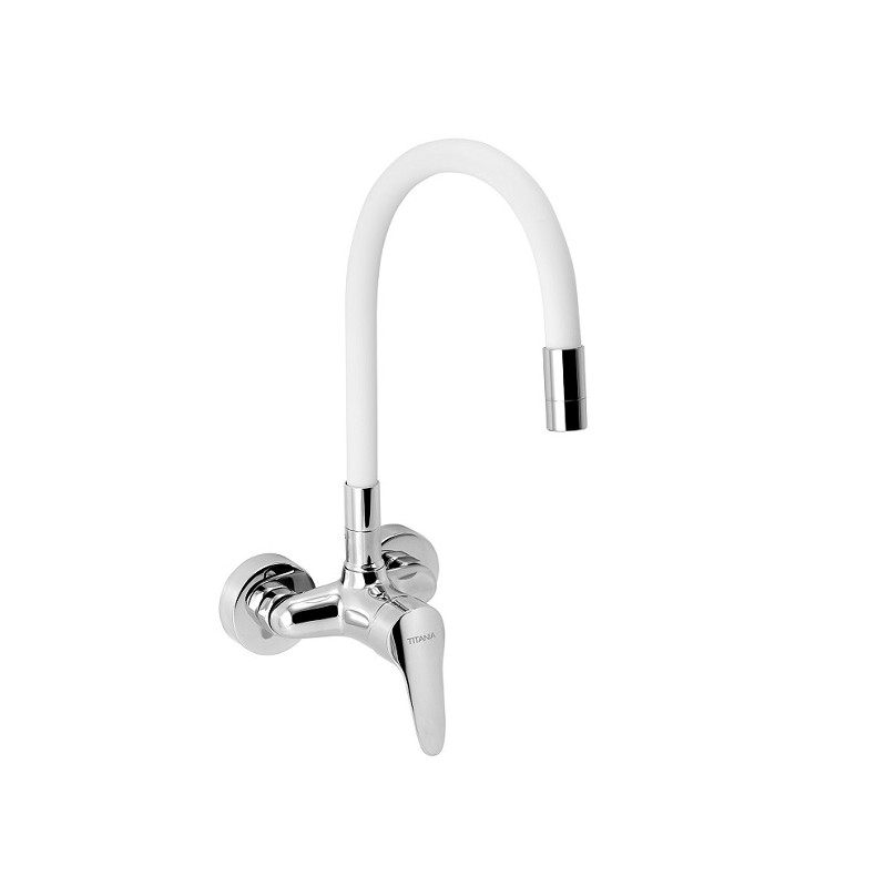 Kvalitná a odolná, keramická kartuš 35 mm so 5 ročnou zárukou. Prvotriedna povrchová úprava. Drezová nástenná batéria s rozostupom 100 mm s vrchným vývodom a FLEXI ramenom.