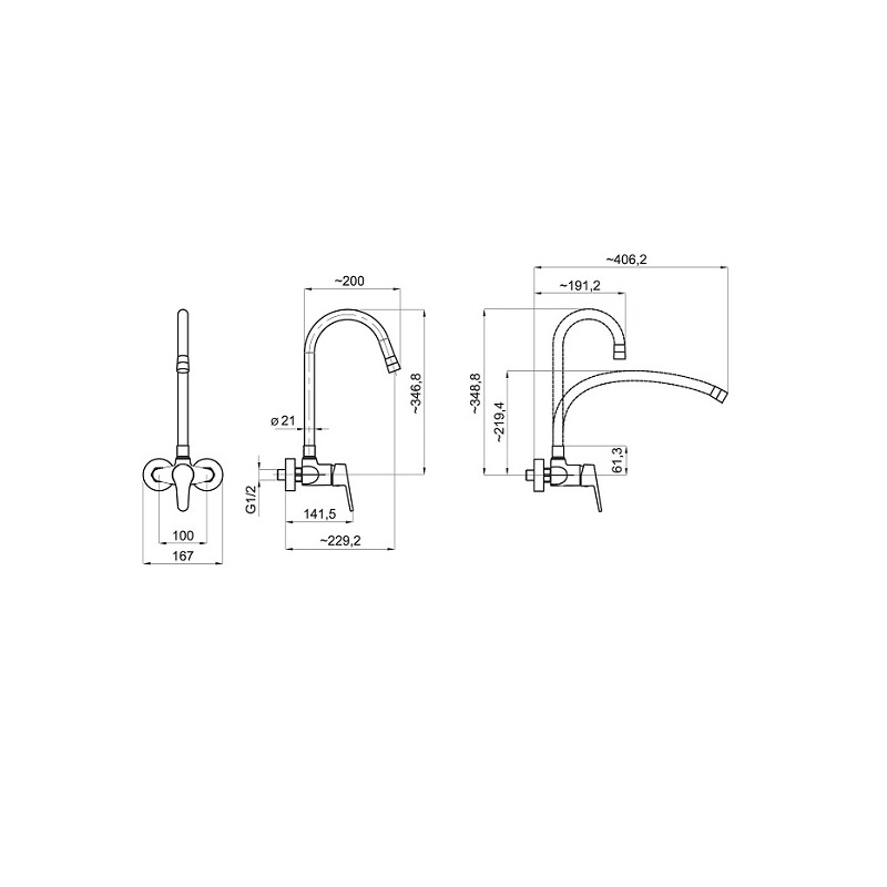 Kvalitná a odolná, keramická kartuš 35 mm so 5 ročnou zárukou. Prvotriedna povrchová úprava. Drezová nástenná batéria s rozostupom 100 mm s vrchným vývodom a FLEXI ramenom.
