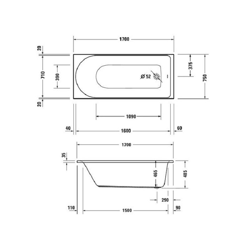 Umiestnenie odtoku | v strede pri kratšej strane |