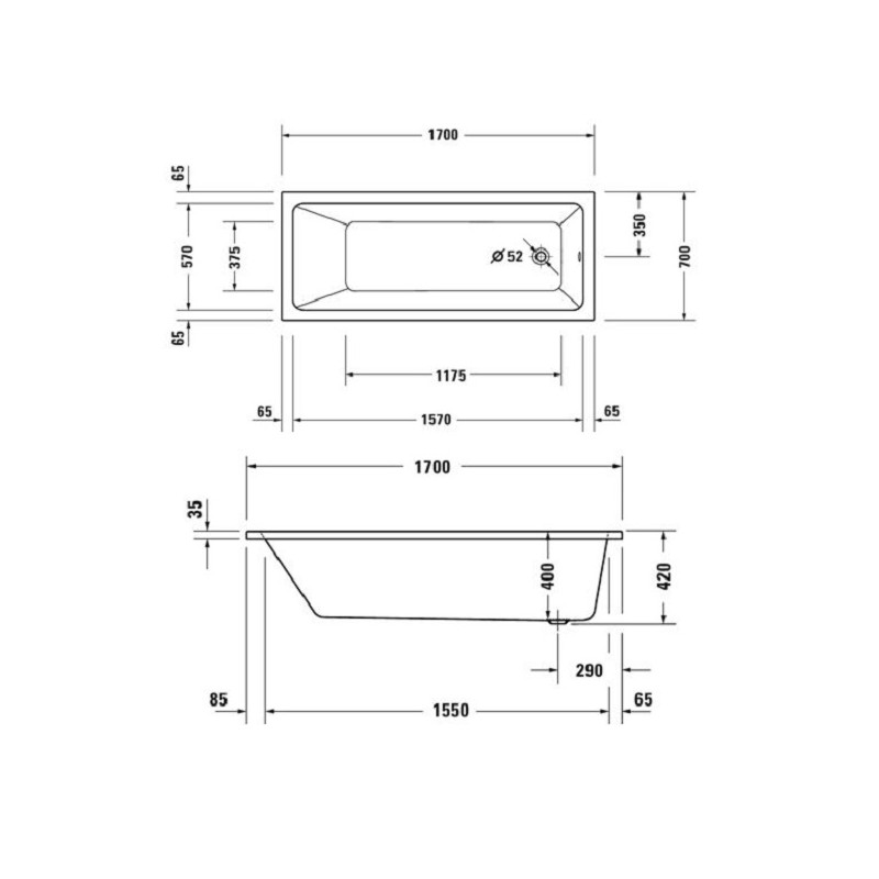 | Umiestnenie odtoku | v strede pri kratšej strane |