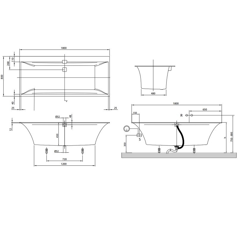 Umiestnenie odtoku | v strede pri dlhšej strane |