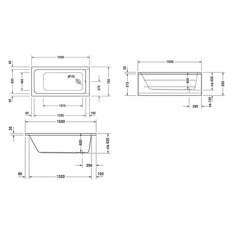 Umiestnenie odtoku | v strede pri kratšej strane |