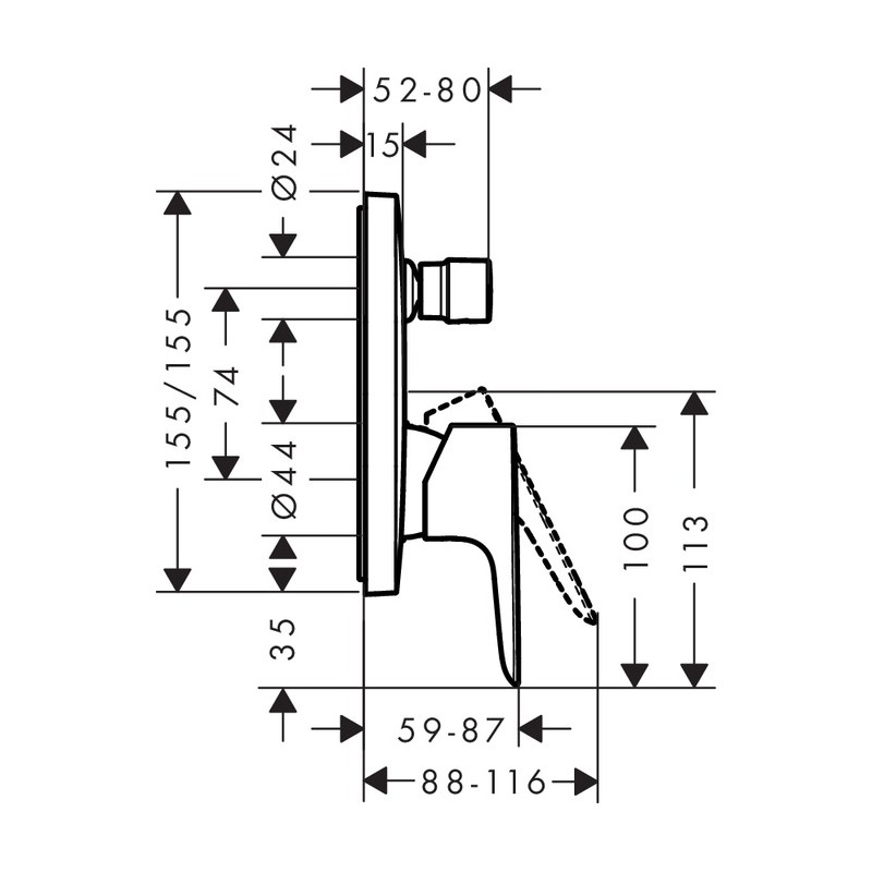 Páková batéria umožňuje presné dávkovanie požadovaného množstva vody a teploty. Kvalitný keramický systém batérie hansgrohe zaručuje trvale spoľahlivú funkciu.