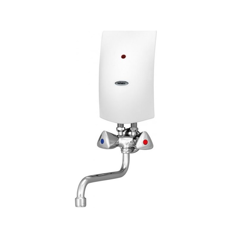 Elektrický prietokový ohrievač vody s klasickou vodovodnou batériou.