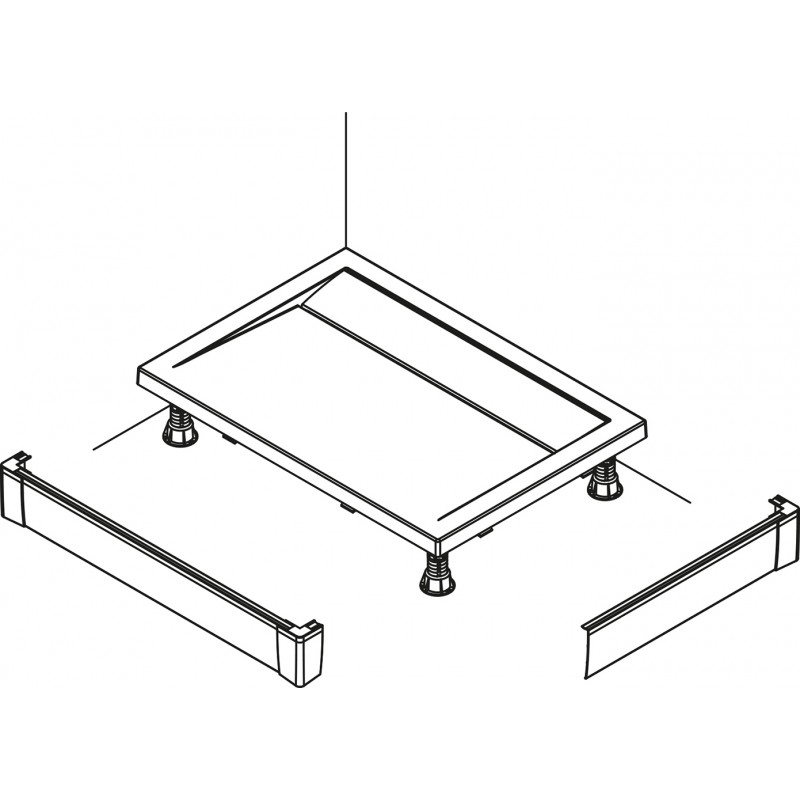 Predný L-panel (dve strany, montáž v rohu) pre sprchovú vaničku SanSwiss. Výška 95mm, masívny hliníkový profil a kovové rohové spojky.