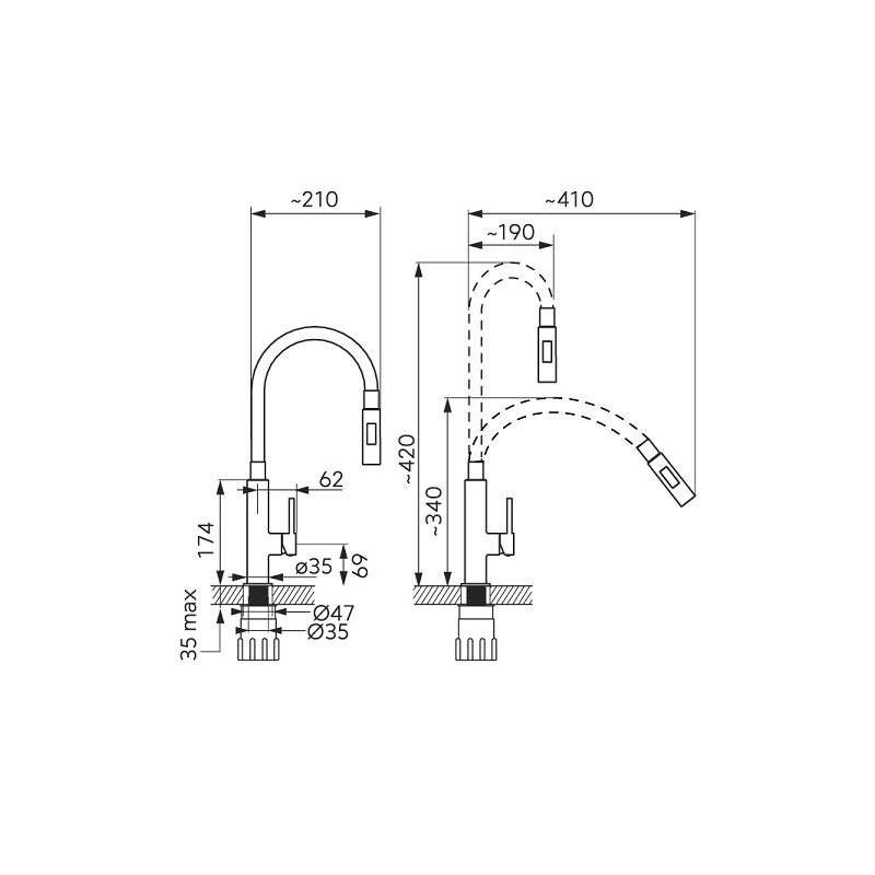 Vyťahovací výtok | bez vyťahovacieho výtoku |