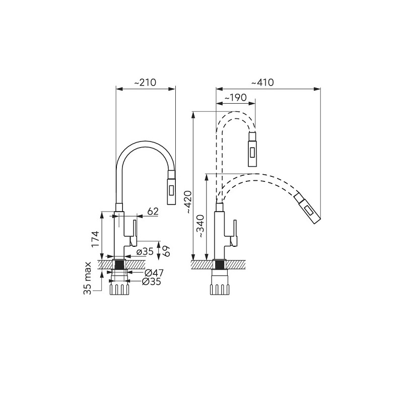 | Vyťahovací výtok | bez vyťahovacieho výtoku |