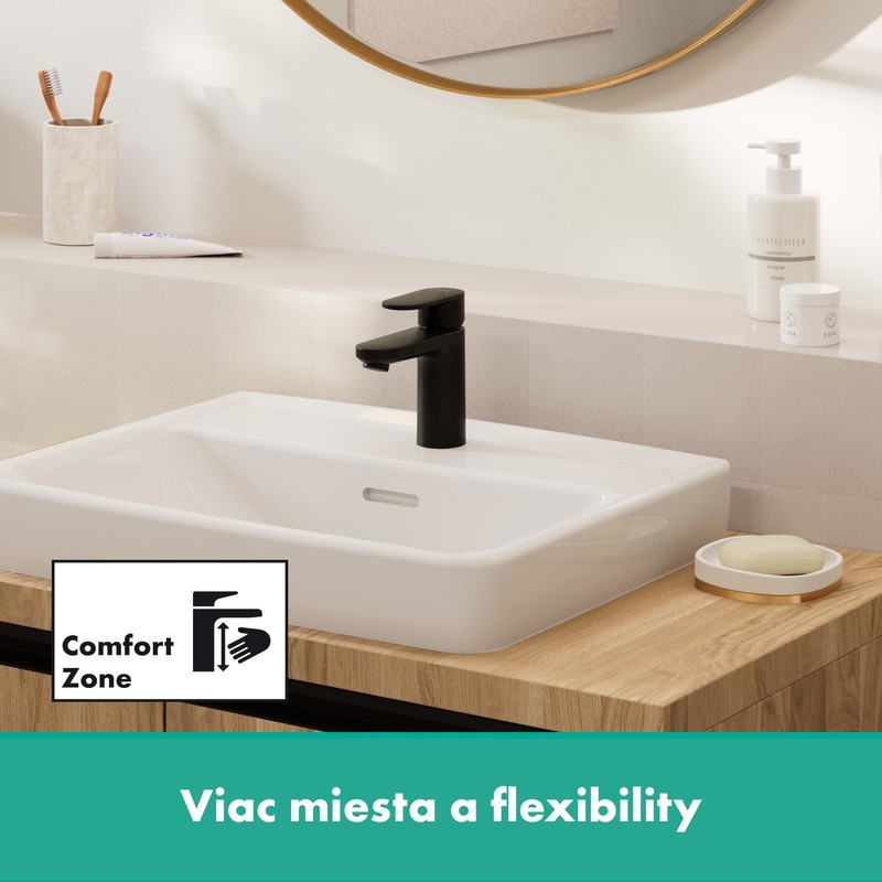 Vďaka svojej jemnej elegancii, harmonickému dizajnu a pôsobivému matne čiernemu povrchu sa umývadlová páková batéria hansgrohe Vernis Blend 100 v matnej čiernej skvele hodí do modernej kúpeľne. Najvyšší komfort: Medzera medzi výtokom a umývadlom ponúka veľa priestoru na pohodlné používanie (ComfortZone 100). Batéria Vernis Blend vnáša do kúpeľne taktiež nadčasový dizajn s osvedčenou používateľskou prívetivosťou od firmy hansgrohe a sú dostupné za atraktívnu cenu.