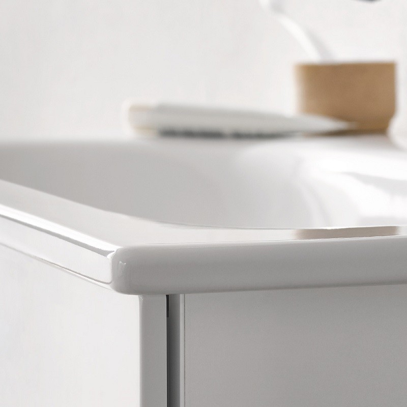 Harmonický, avšak súčasne revitalizujúci kúpeľňový zážitok budete mať na dosah ruky vďaka novému radu GROHE Essence Ceramics, ktorá bola vytvorená na základe prírodných tvarov. Umývadlo GROHE Essence Ceramic meria 800 mm × 460 mm a je navrhnuté na zabudovanie do kúpeľňového nábytku pre skutočne elegantný vzhľad, ku ktorému prispieva tiež iba 17 mm hrubý okraj. Dodáva sa s 1 vyrezaným otvorom na batérii a rozumným odpadovým riešením, ktoré je diskrétne umiestnené oproti batérii. Keramický povrch v nádhernej farbe Alpine White bol vylepšený technologicky pokročilou glazúrou GROHE PureGuard, ktorá zaručuje maximálnu hygienu a jednoduchú údržbu. Odpudzuje totiž vodný kameň, zatiaľ čo antibakteriálne ióny potláčajú rast baktérií.