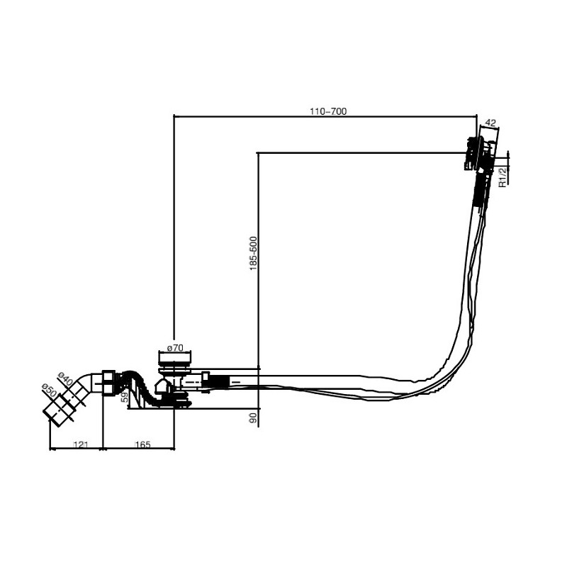 telo vaňového napúšťacieho sifónu SWING PLUS 100 cm,dĺžka bowdena 100cm, odpadové potrubie d: 40/50 mm,DOPORUČENÉ PRÍSLUŠENSTVO: vrchná sada Swing Plus chrómová s vodopádom (05036810000), prípojná hadica Swing Plus ( 05037000000,318699),SANIT,