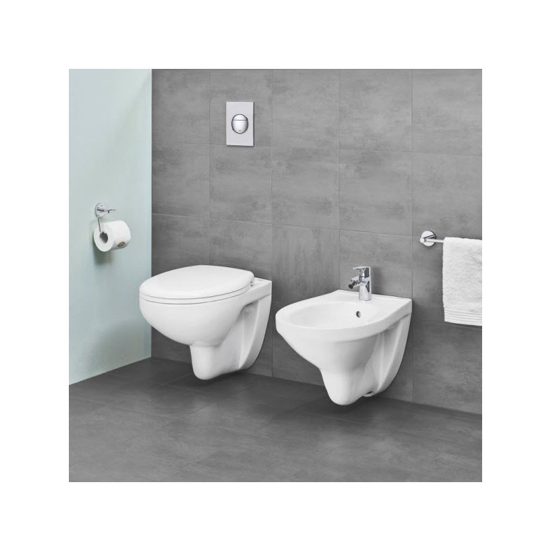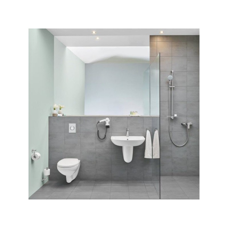 Pre tých, ktorí chcú skutočne dôkladnú rekonštrukciu kúpeľne, má závesné WC GROHE Bau Ceramic veľa čo ponúknuť. Jeho jednoduchý dizajn obohatí každý kúpeľňový interiér. Toto WC je vyrobené s bezokrajovou konštrukciou misy zo sklenenej keramiky vo farebnom vyhotovení Alpine White, ktorá úspešne zabraňuje rastu a usadzovaniu baktérií. Súčasne je zárukou nenáročnej údržby a efektívnejšieho splachovania. Určené na spojenie s podomietkovou nádržou, objem splachovania je 6/3 litre. Svoju vysnenú a esteticky zjednotenú kúpeľňu môžete teraz ľahko uviesť do reality vďaka tomu, že sanitárna keramika GROHE Bau Ceramics je dokonale zladená s vodovodnými batériami GROHE Bauline. S výberom a kombináciou jednotlivých produktov vám navyše pomôže naša aplikácia GROHE PerfectMatch. Voľbou sanitárnej keramiky GROHE môžete ťažiť z know-how svetového experta na vodovodné batérie, spoločnosť GROHE, a z viac než storočnej skúsenosti a technologickej expertízy japonského výrobcu LIXIL, lídra na poli povrchových technológií. GROHE Bau Ceramics – nadčasový dizajn a všestranná kvalita do každej kúpeľne. Medzi ideálne doplnky tohto produktu patrí doska GROHE Bau Ceramic s rýchlym uvoľnením (39492000), prípadne doska GROHE Bau Ceramic s rýchlym uvoľnením a funkciou SoftClose (39493000).