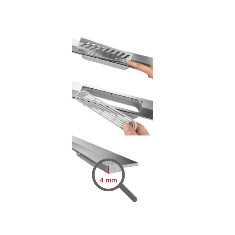 ACO ShowerDrain S+ sprchový profil Plate 1200 x 55 mm leštená nerezová oceľRozsah dodávky: - profil s designovým roštom Plate, - sítko na vlasy -predlžovací nástavec (pre výšku dlažby 15 - 35 mm)Čistý a elegantný vzhľad - Sprchový profil s pozdĺžnym spádom k odtokovému roštu - Vyrobené z plného profilu z nerezovej ocele s hrúbkou 4 mm - Z jedného kusa ocele bez akýchkoľvek spojov - Elektrolyticky leštený povrch - Precízne spracovaný vtokový rošt nenarušuje jednoliaty vzhľad profilu - Rovný obvod sprchového profilu pre bezproblémové napojenie na dlažbeChytrá inštalácia - Dvojdielne riešenie s možnosťou mierneho vyosenia alebo pootočenia sprchového profilu voči zabudovanej vpusti - ACO Pad pre bezproblémové priloženie vodováhy a uloženie do roviny - Dĺžkovo prispôsobiteľný sprchový profil skrátením až o 80mm (maximálne 40mm z každej strany) - Priama inštalácia profilu do dlažby s celkovou hrúbkou súvrstvia 15mm - Možnosť inštalácie s keramickou alebo kamennou dlažbou do hrúbky až 35 mm (vyrovnávací prvok súčasťou dodávky)Jednoduché čistenie - Vybratie roštu je extrémne jednoduché vďaka funkcii Tip Flip, stačí zatlačiť prstom na logo ACO a rošt sa nadvihne, nepotrebujete žiadne nástroje. - Sitko na vlasy a ostatné nečistoty je štandardne súčasťou dodávkyVýhody produktu - Osobitý minimalistický dizajn - Univerzálny pre inštaláciu k stene alebo do priestoru - Pripravené pre priamu inštaláciu dlažby s hrúbkou 10mm - ACO Pad pre vyrovnanie sprchového profilu - Jednoduché prispôsobenie inštalačnej výšky - Továrni pripojené izolačné membrána (spĺňa špecifikáciu W3-I podľa DIN 18534) - Spĺňa všetky úrovne ochrany proti hluku (SST I-II podľa VDI 4100)
